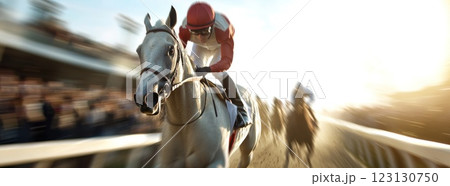 Jockeys on track: thrilling race, powerful horses, competitive spirit, dynamic motion, trackside energy, galloping rhythm, athletic performance, vibrant pace, captivating sporting atmosphere.
