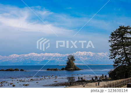 風景・富山県、雨晴海岸の女岩(めいわ)