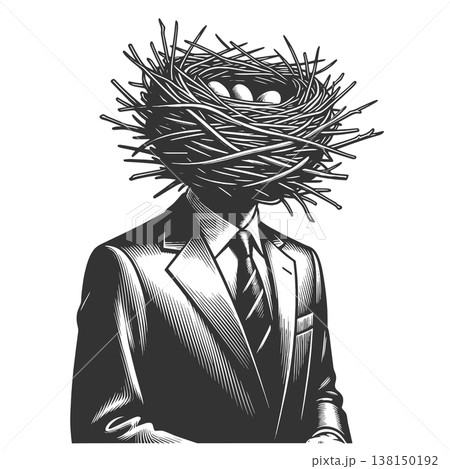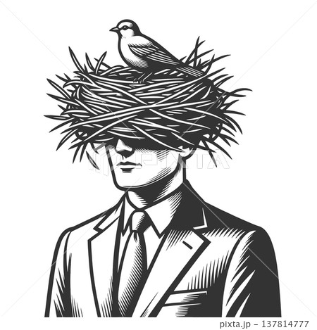 Blindfolded Businessman With Bird Nest raster