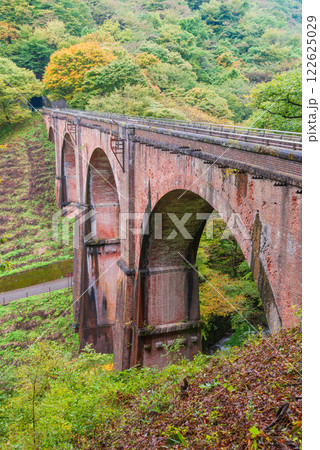 秋の群馬県安中市のめがね橋(碓氷第三橋梁)