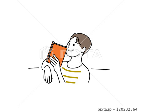 本を読みながら想像をめぐらす男性