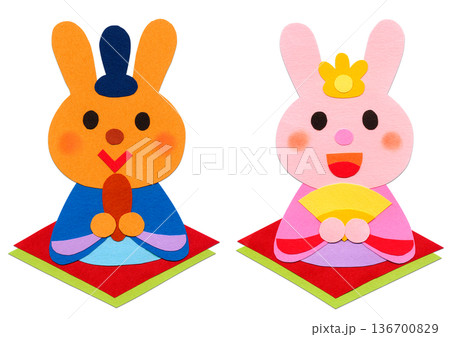 ひなまつり うさぎのおひなさまの貼り絵イラスト 単体素材