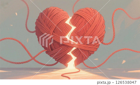 毛糸で作られた、ひび割れたハート 心理学向けイラスト