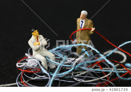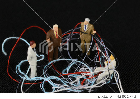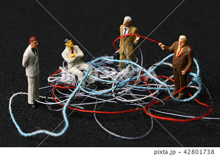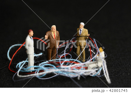 絡まった糸とビジネスマンたち