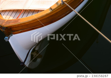 Boat Bow with Mooring Rope Tied to Dock