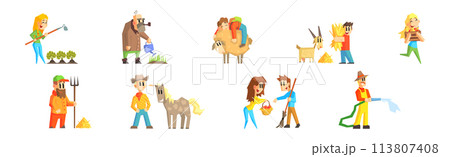 Funny Man and Woman Farmer Character Enjoy Horticulture and Agriculture Vector Set