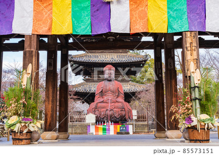 冬の八事山興正寺、中門の門松と平成大仏〈愛知県名古屋市〉