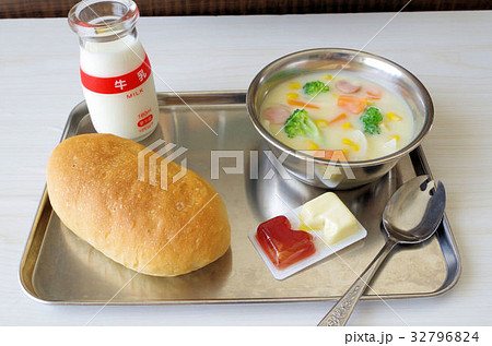 昭和の岩手県の給食 昭和26年ジャムパン味噌汁とアルマイトの食器