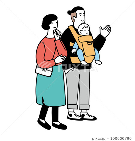 赤ちゃんを抱っこする夫婦のシンプルなイラスト