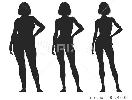 痩せ過ぎ 太り過ぎ 中肉中背の3人の女性のシルエットのイラストセット