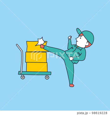 人員不足と再配達問題でストレスフルな作業服の男性のイラスト素材
