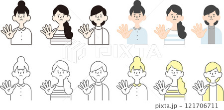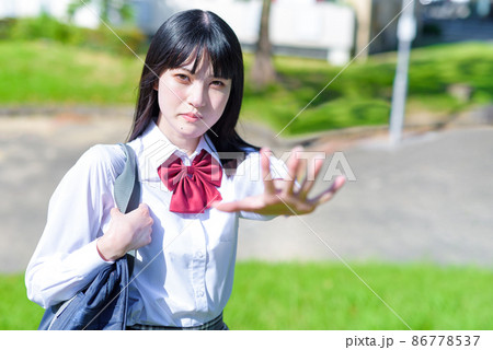 学校の登下校の途中でこちらに手を広げて止める女子高校生 通学登校下校 上半身 ダメ