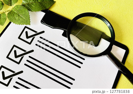 何も書かれていないチェックリスト - 書類を挟んだバインダーと鉛筆のおしゃれな素材