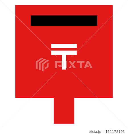 日本の郵便ポストのアイコン、赤い四角い箱に郵便マーク