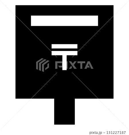 日本の郵便ポストのモノクロアイコン、黒い四角い箱に郵便マーク