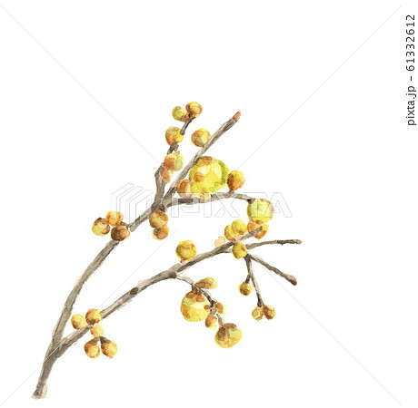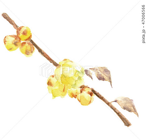 水彩 ロウバイ ろうばい 蠟梅 花 植物 素材