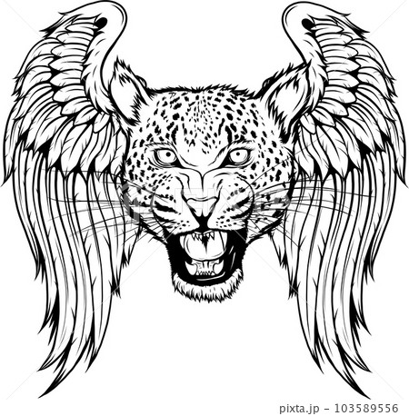An illustration of a snow leopard leaping down a snowy mountain slope