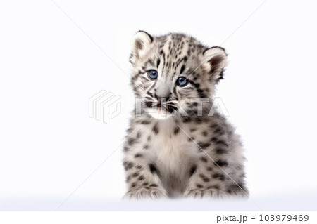 Snow Leopard cub isolated on on white background, Panthera uncia. Generative AI