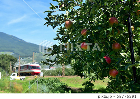 りんごの木と長野電鉄特急ゆけむり号
