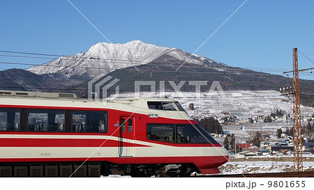 高社山をバックに湯田中温泉を目指す特急ゆけむり号 長野電鉄長野線のロマンスカー
