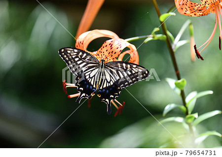 40677 ユリの花とアゲハチョウ