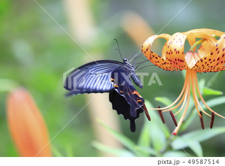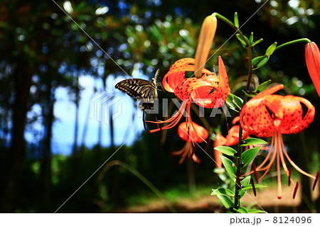 40678 ユリの花とアゲハチョウ