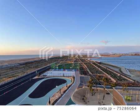 沿岸の散歩道 宮城県名取市閖上の堤防