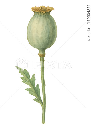 Vintage botanical watercolor poppy stem with seed pod PNG image with transparent background