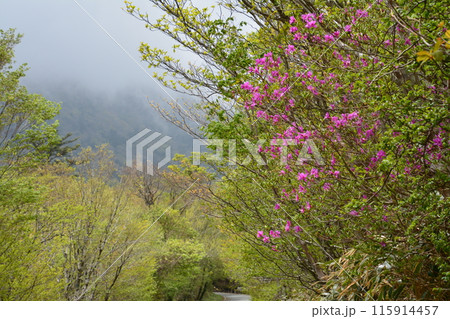 ミツバツツジ咲く瓶ヶ森林道(高知県いの町よさこい峠付近)