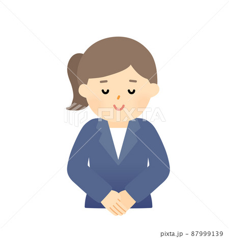 スーツの女性 キャラクター / お辞儀 全身 2.5頭身 カットイラスト