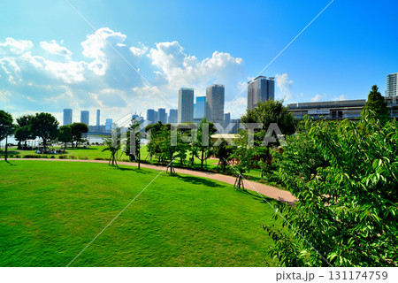 豊洲公園から観た晴海臨海公園 高層マンションの風景