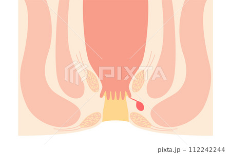肛門の病気、痔「あな痔(痔ろう)」 図解イラスト、断面図