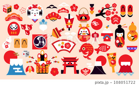 Japanese toys. National cultural lucky items, asian fortune symbol