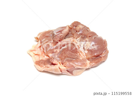 未調理の若鶏もも肉ブロック、越の鶏【白背景・切り抜き】