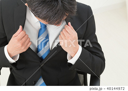 スーツの匂いを嗅ぐミドル男性ビジネスマン