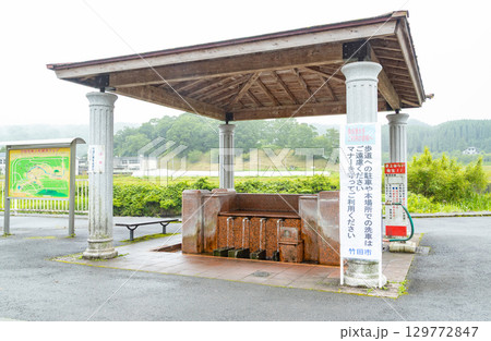 竹田湧水群の中でも、水量が豊富な「河宇田湧水」の給水場