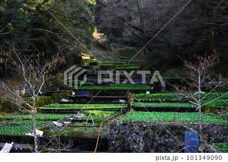 初春のわさび田 浄蓮の滝 静岡県伊豆市