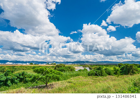 夏の淀川風景 淀川河川公園枚方地区からの眺め 枚方市