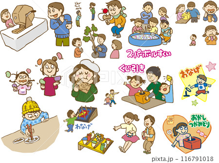 小さなお祭りの広告にも使える8月のベクターイラストセット