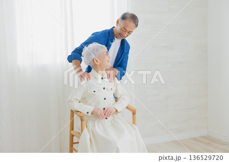 妻の肩揉みをする夫