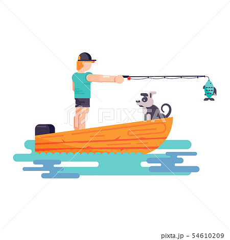 Man boy play with best friend pet character dog or puppy illustration. Family playing with doggie
