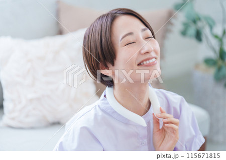 ネッククーラーをつけた女性