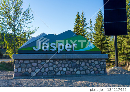 Jasper, Alberta, Canada. Welcome to Jasper Town Sign Amidst Scenic Canadian Rockies.