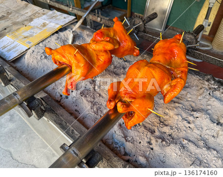 Raw Meat Skewers on Ice Display