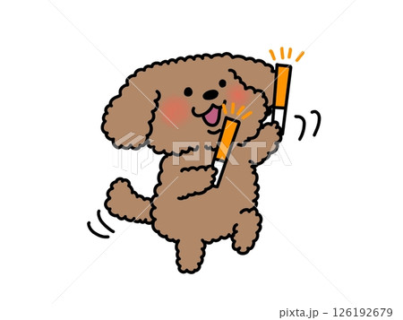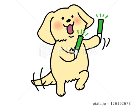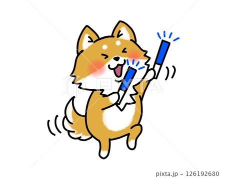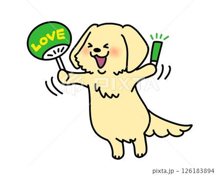応援されて照れる犬のキャラクターイラスト(ペンライト・お祭り風)