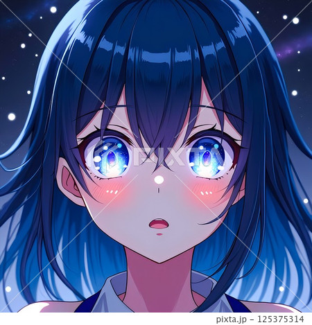 【イラスト素材】瞳の奥の宇宙は-可憐に見つめる少女像
