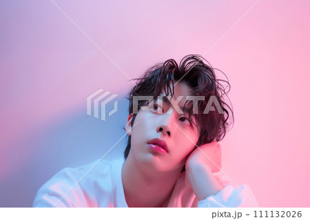 ぼーっとして考え事をしている若い男性