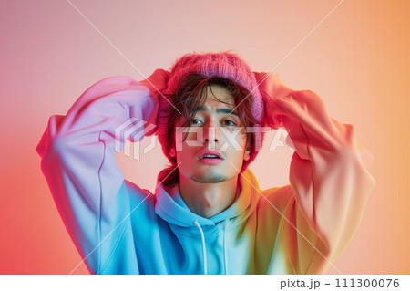 頭を抱え困っている若い男性