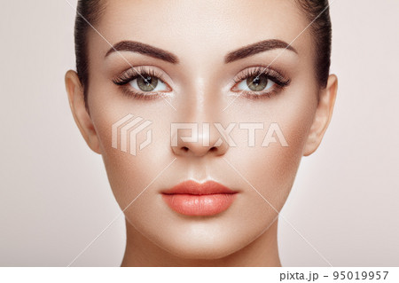 Beautiful woman with long false eyelashes