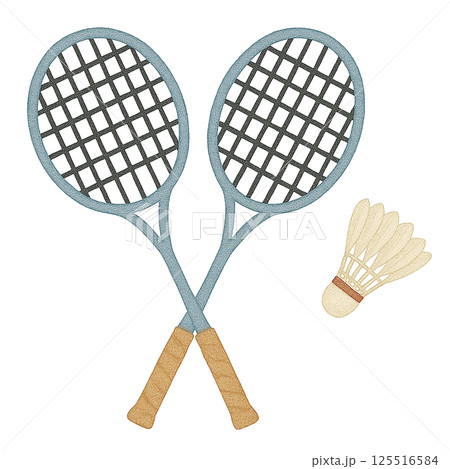 交差するバドミントンラケットとシャトルの水彩イラスト(スポーツ・道具)